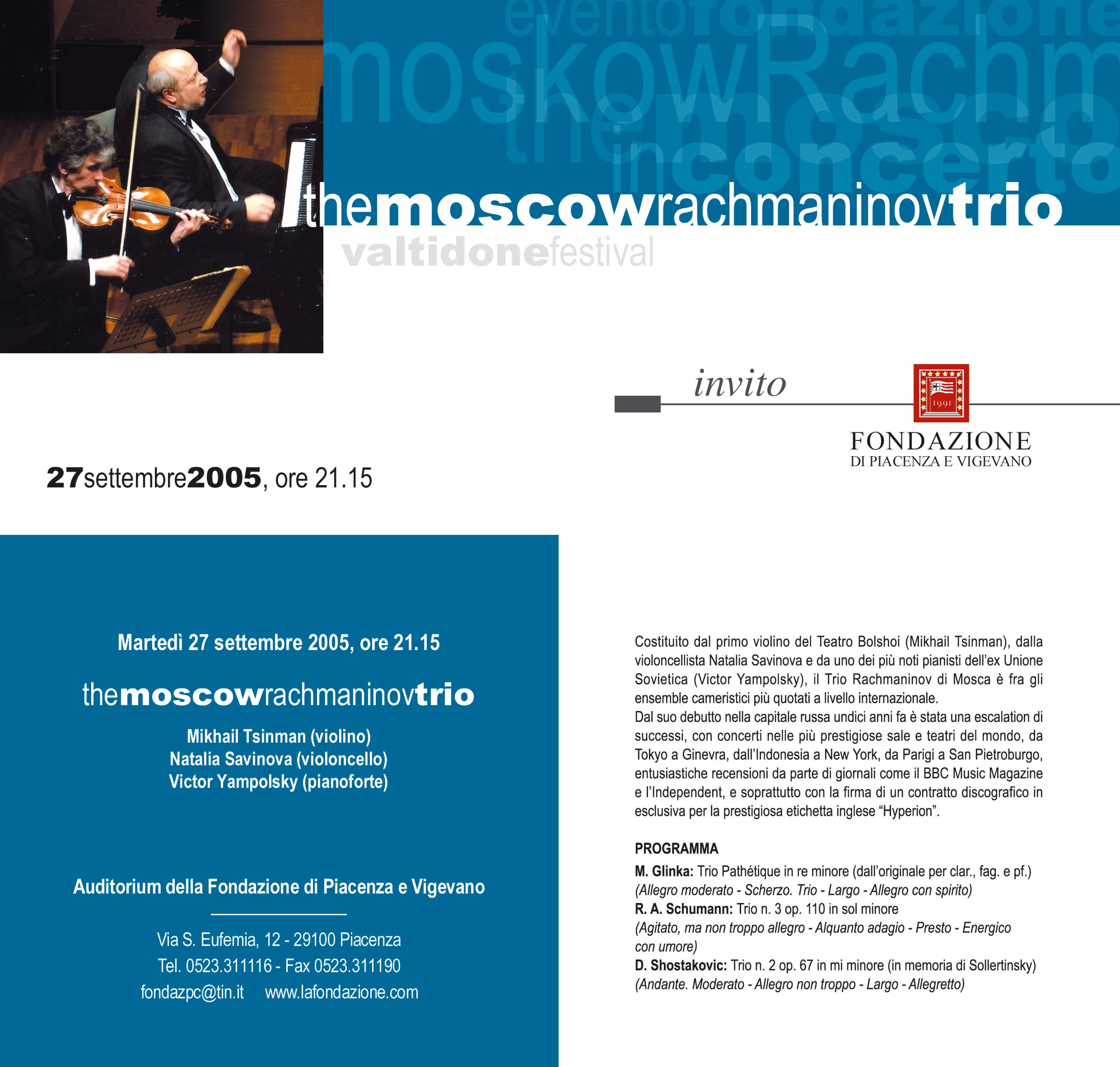 27 Settembre 20051 evento presente - Auditorium della Fondazione